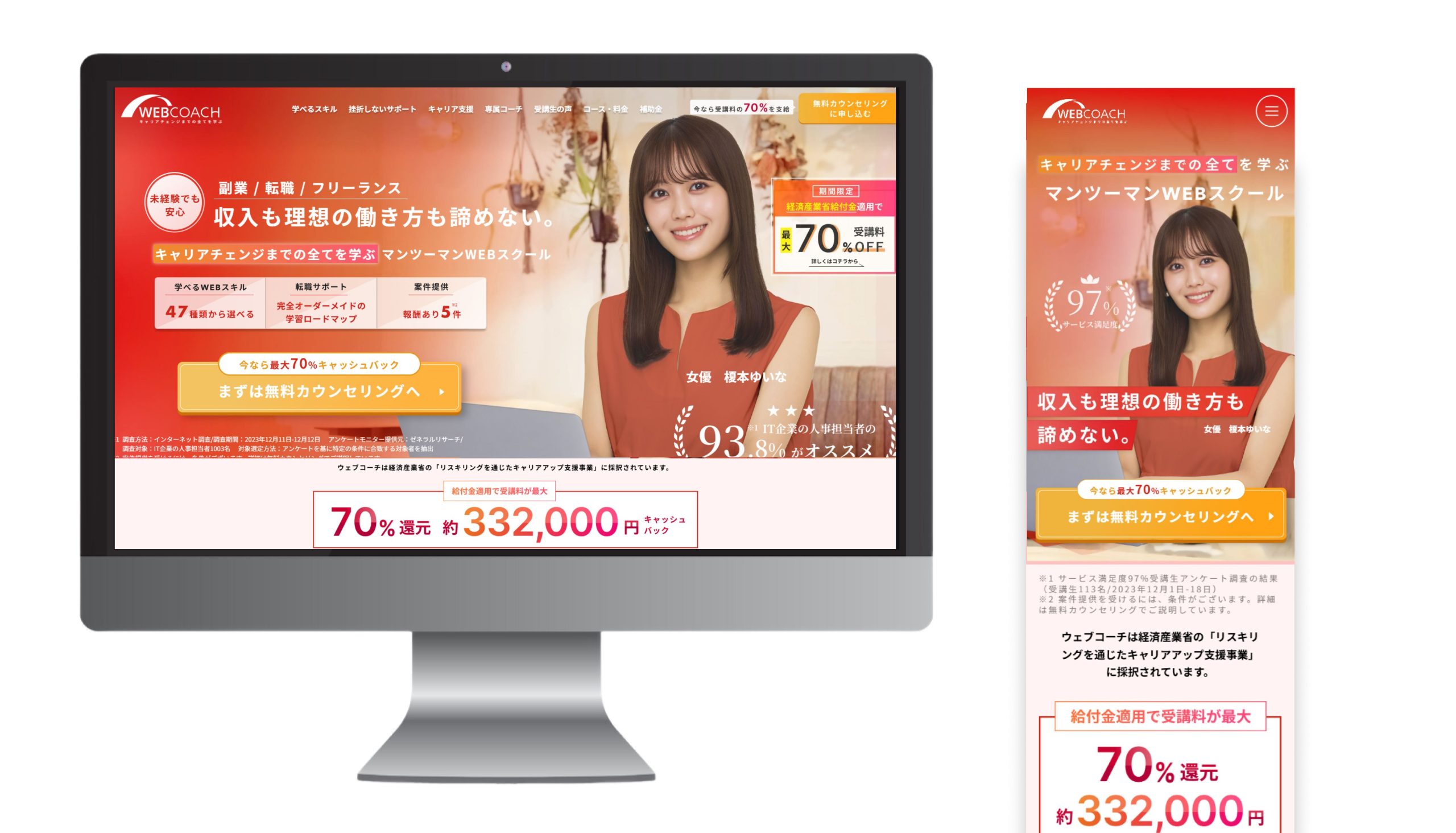 LWEBCOACH は、 キャリアチェンジまでの全て を学び理想の”収入と働き方”、どちらも叶えるためのマンツーマンWEBスクール です。